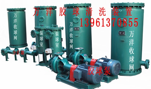 凝汽器膠球清洗裝置由(二次濾網(wǎng))、收球網(wǎng)、裝球室、膠球輸送泵和電氣控制柜等部件組成